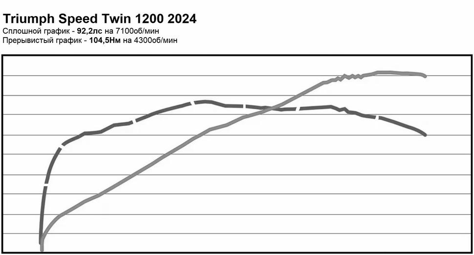На весах Triumph Speed Twin 1200 в снаряжённом виде показал 217кг, а на диностенде произвёл 92,2лс на 7100об/мин и 104,5Нм тяги на 4300об/мин. Обильная и равномерная тяга по всему диапазону оборотов вместе с характерными пульсациями 270-градусного коленвала делают Triumph Speed Twin 1200 одним из самых харизматичных современных классиков.