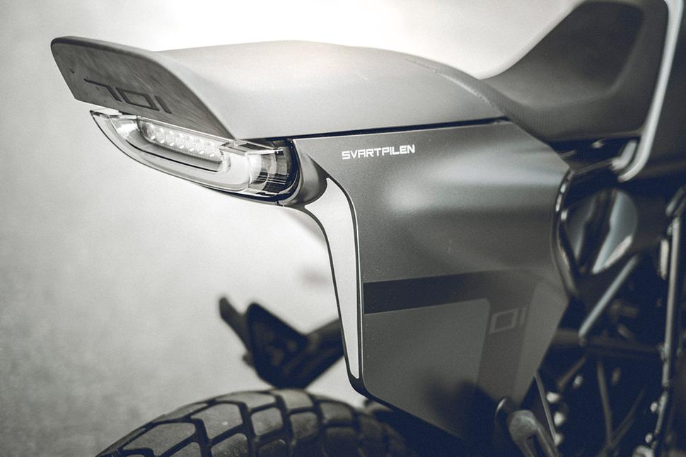 Бронзовая отделка крышки бака и крышек двигателя оттеняет общую чёрную окраску Svartpilen 701, на фоне которой маркировка модели выглядит крайне деликатно. Синтетическая обшивка сиденья сочетает в себе верх из искусственной замши и перфорированные боковины и выглядит превосходно. А хвост, визуально пластиковый, на самом деле выполнен из плотной пены, позволяя при необходимости посадить на него пассажира с некоторым комфортом.