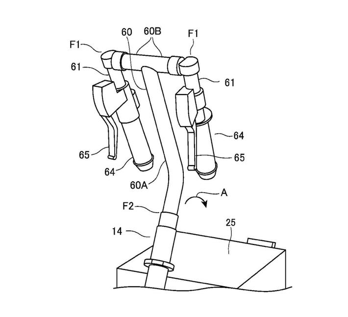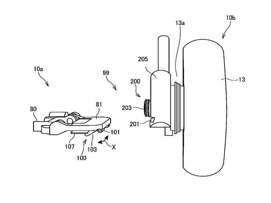 Что касается других особенностей конструкции, то изображённый в патенте электроскутер имеет комбинированный узел, сочетающий в себе маятник, мотор и трансмиссию, к которому крепится заднее колесо. Батарея установлена под седлом, что означает, что она может быть быстросъёмной (например, собственного Хондовского формата Mobile Power Pack, как в нескольких моделях Honda для домашнего рынка). Но самой интересной конструктивной особенностью скутера является то, каким образом Honda намерена упростить для персонала процесс сбора прокатных скутеров, разбросанных по городу, и возврат их на базу для подзарядки.