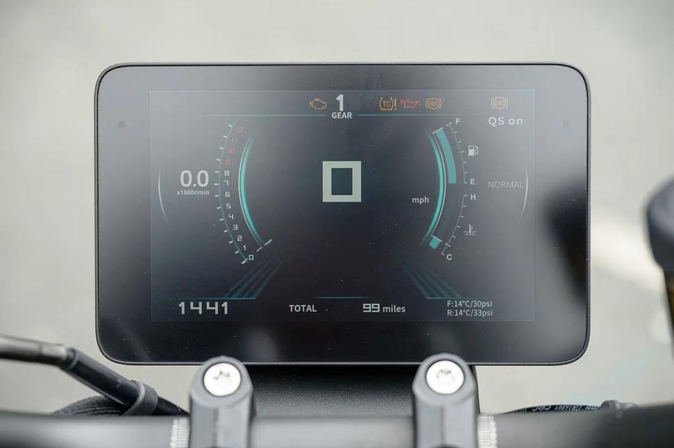 А за городом QJ SRK900 2026 впечатляет ещё сильнее. Плавное открытие и закрытие газа во время обгона или череда поворотов веселят и доставляют удовольствие. После нескольких первых тысяч оборотов газ становится плавнее, а 270-градусный порядок вспышек добавляет приятной тяговитости. Реальная повседневная езда на этом мотоцикле одновременно расслабляет и увлекает.