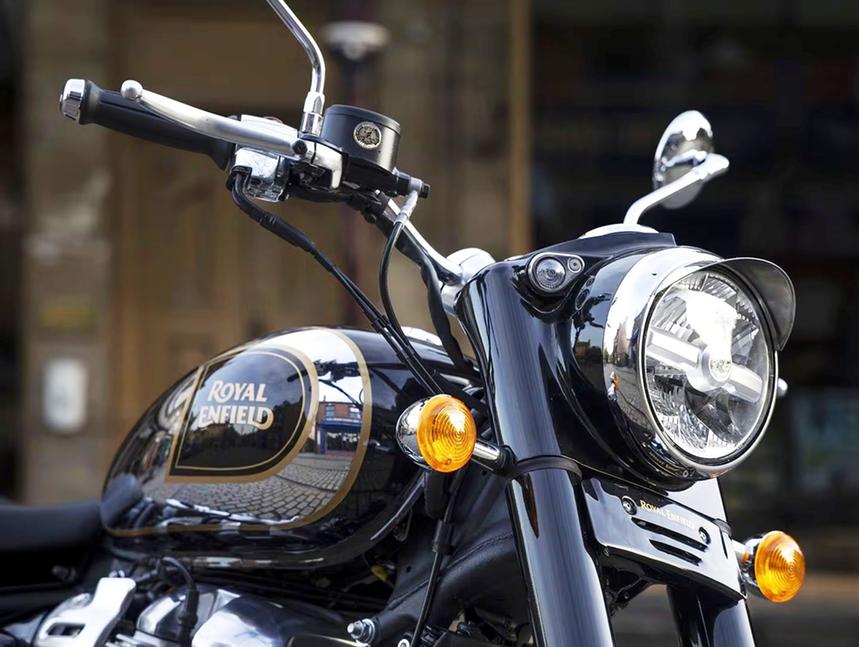 Возможно, по духу Classic 650 может быть наследником моделей Bullet и Classic 350, но его корни уходят и к первой рядной двойке Enfield - модели 500 Twin 1948 года с каплевидным баком, уникальной облицовкой фары и самой первой в мотоиндустрии маятниковой задней подвеской. В XXI веке современный 650-кубовый твин Enfield дебютировал в 2017 году в составе моделей INT650 и Continental GT, а затем платформа в последние годы обросла моделями Super Meteor 650, Shotgun 650 и Bear 650. По сути, в Royal Enfield Classic 650 2026 используется тот же 648-кубовый мотор, и хотя он имеет массу общих деталей с Shotgun и Super Meteor - главную раму, коробку, тормоза и даже некоторые элементы подвесок - внешность, геометрия и эргономика здесь переработаны. Полированные алюминиевые крышки двигателя, удлинённые крылья и спицованные колёса тут есть, да, но колёсная база в 1473 мм стоит ровно между Super Meteor и Shotgun. Бак другой формы вмещает 15 литров, а высота по седлу достигает 800 мм. Визуально акцент сделан на новом обвесе, нейтрально расположенных подножках, более высоком руле и тщательной проработке деталей. Диодная фара гордо заключена в шикарный кожух с алюминиевым козырьком, обрамлённый уникальными ходовыми огнями Enfield, которые они называют "тигриный глаз".