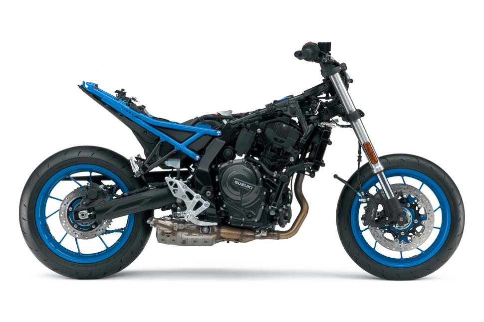 Трансмиссия мотоцикла оборудована двунаправленным квикшифтером, и если он унаследован от нынешнего поколения GSX-S1000GT, то это один из лучших квикшифтеров на сегодня, который существенно повысит удовольствие от езды на 8S. Новый двигатель расположен в новой стальной раме с алюминиевым подрамником. Подвески состоят из перевёрнутой вилки и моноамортизатора KYB с регулировкой преднатяга, а радиальные суппорта Nissin стоят на двух передних 310-х дисках. GSX-8S штатно оборудован ABS и четырёхступенчатым трекшн-контролем, который можно выключить полностью, а ЭБУ мотоцикла оснащено тремя режимами езды.