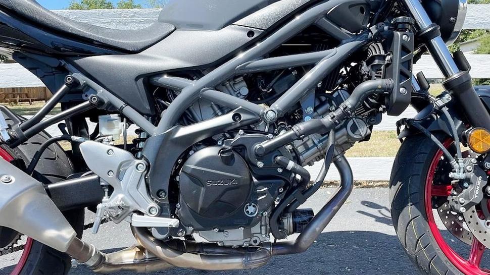 Первая передача втыкается с приятным щелчком, и мотоцикл напоминает, почему у него так много поклонников. SV невероятно прост в управлении, но не в ущерб драйву, которого лишено большинство новичковых моделей. Все органы управления чёткие и точные, коробка переключается абсолютно уверенно, а нейтраль находится моментально. Тормоза хорошие, но не слишком агрессивные, и всё работает совершенно нейтрально.