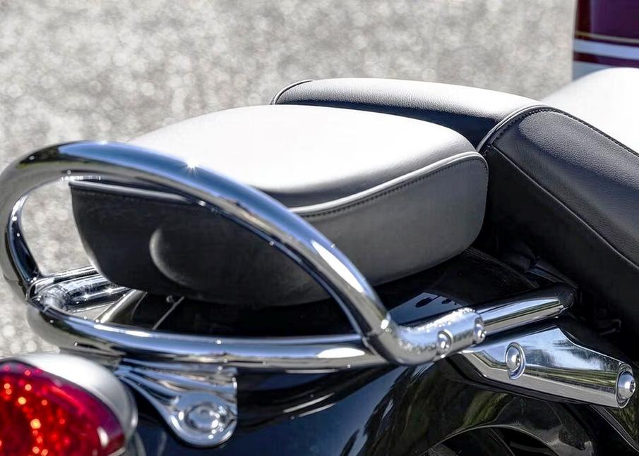 Детализация и качество отделки - высший класс. Задней подвески не видно: амортизатор и рычаги аккуратно спрятаны. Посадка с вынесенными вперёд ногами заставляет забыть, что перед тобой серийный мотоцикл, а не кастом. Цилиндры с рёбрами охлаждения, как всегда, застыли по стойке смирно, словно королевские гвардейцы у Букингемского дворца.