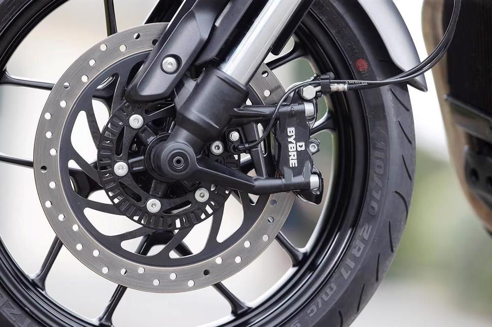 Спереди стоит радиальный суппорт ByBre на 300-миллиметровом диске, а двухканальная ABS (тоже не учитывающая углы наклона) ненавязчива, даже когда её провоцируешь. Тормозная система спроектирована так, чтобы быть удобной и простой в использовании, и с тремя пальцами на рычаге скорость снижается эффективно без ощущения дешёвых или деревянных тормозов.