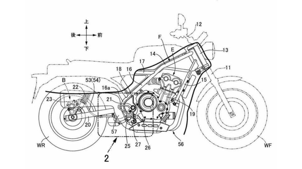 Судя по всему, Honda планирует выпустить ещё одну модель в классическом стиле. В новой заявке фигурирует мотоцикл, очень похожий по конфигурации на недавно представленный кубатурный круизёр, и скорее всего это будет более "стандартная" версия Rebel 1100 - в том же смысле, в каком "стандартный мотоцикл" в некоторых языках означает "классик". Эскиз изображает мотоцикл на трубчатой раме с явно более собранной посадкой, чем круизёрная, но в остальном похож на Rebel.