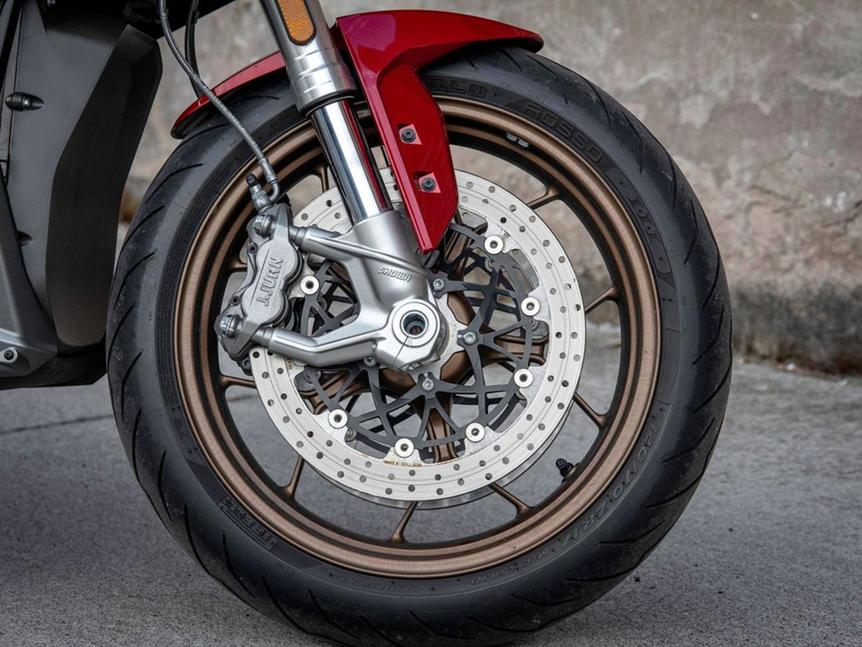Мотоцикл не только выглядит красиво, но и оснащается топовой электроникой и прочими компонентами, такими как 43-я вилка Showa BP-SFF с полным комплектом настроек и 40-миллиметровый моноамортизатор с внешним резервуаром сзади, также от Showa и также полностью настраиваемый.