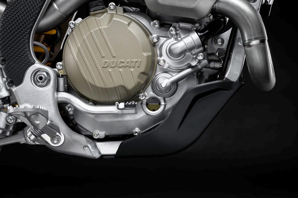 Ducati заявляют, что 70% от максимального крутящего момента доступны уже с 4200об/мин, что способствует более мощному выходу из поворотов и более управляемой тяге по сравнению с традиционными 450-кубовыми кроссовыми моделями. Отсечка установлена на 11900об/мин - на уровне лучших представителей класса.