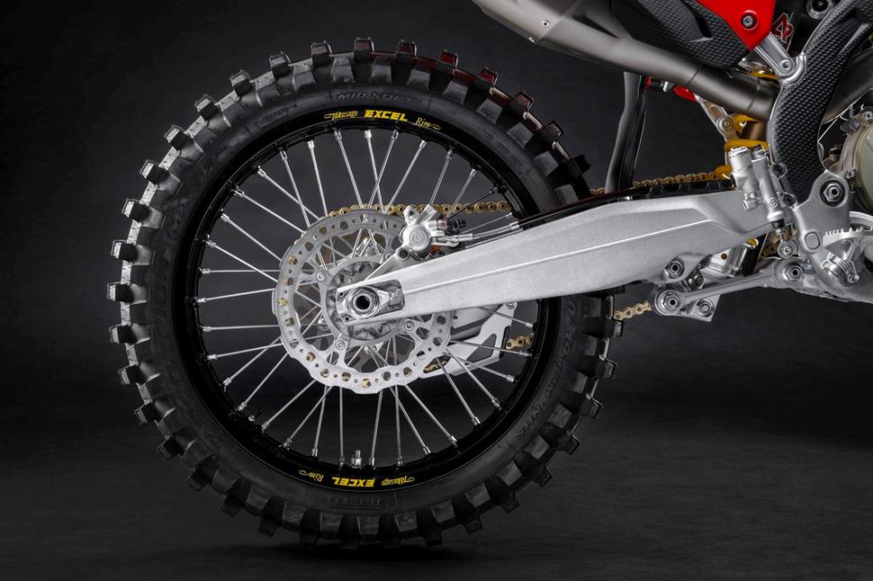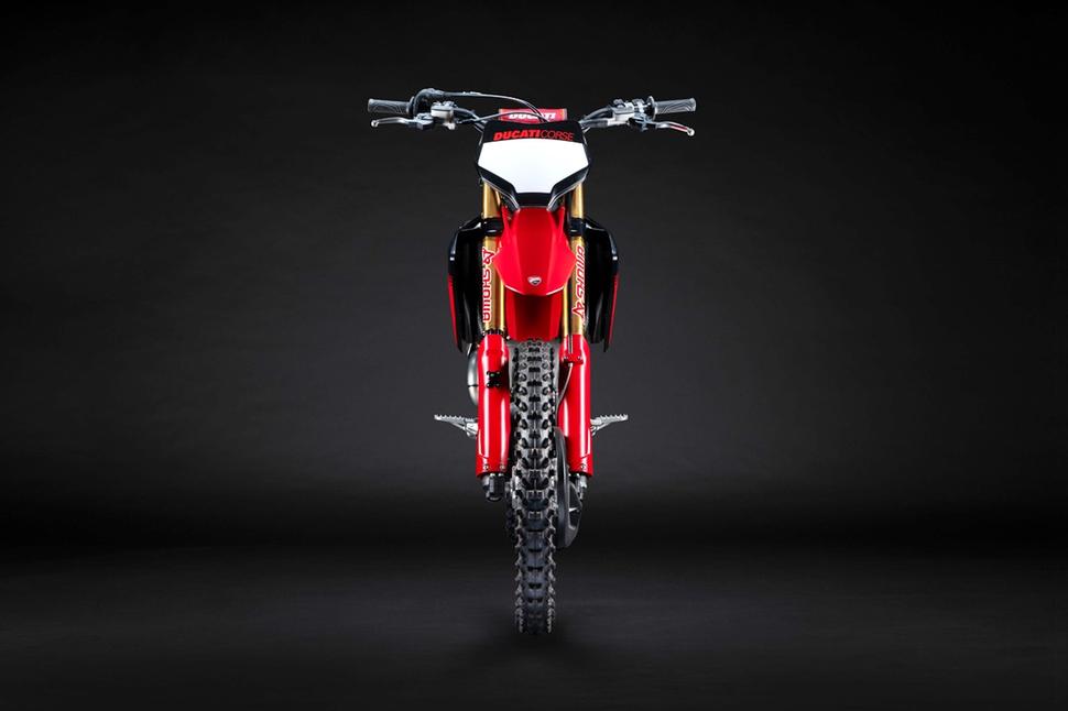 449,6-кубовый одноцилиндровый двигатель Ducati Desmo450 MX Factory с десмодромным приводом клапанов выдаёт 63,5лс на 9400об/мин и 53,5Нм на 7500об/мин. Двигатель установлен в алюминиевой двухлонжеронной раме. Подвески от Showa представлены 49-й вилкой с закрытыми картриджами, имеющей ход 310мм, и задним амортизатором с ходом колеса 301мм. Обе подвески обладают полным комплектом регулировок, а их поверхности покрыты Dark Kashima и оксидом титана для более плавного хода и долговечности. Тормозная система от Brembo оснащена дисками Galfer, 260-м спереди и 240-м сзади. Обода Takasago Excel оспицованы спицами от Alpina и обуты в шины Pirelli Scorpion MX32 Mid-Soft.