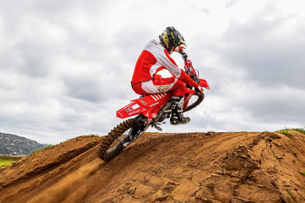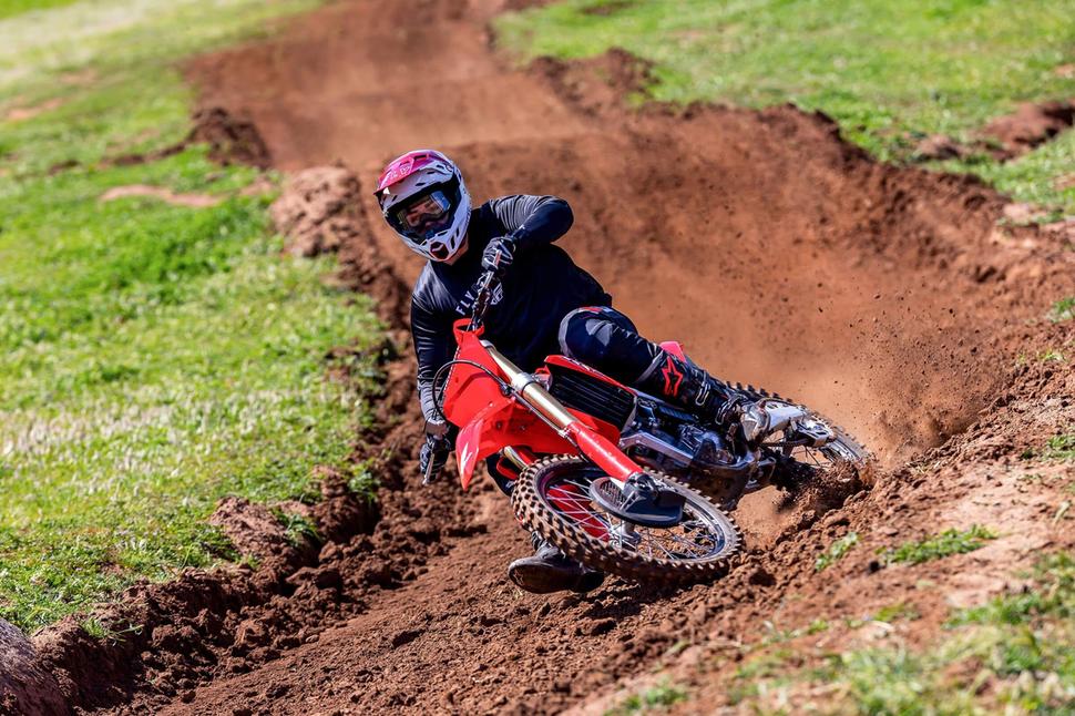 Двигатель действительно более мощный и резкий, лучше откликается на газ, чем на базовой CRF250R, так что подниматься на препятствия и прыгать с ним легче. Но прыжки - не единственная область, где новый двигатель показывает себя хорошо. Он хорош также просто на ходу, потому что с ним проще держать правильную передачу.