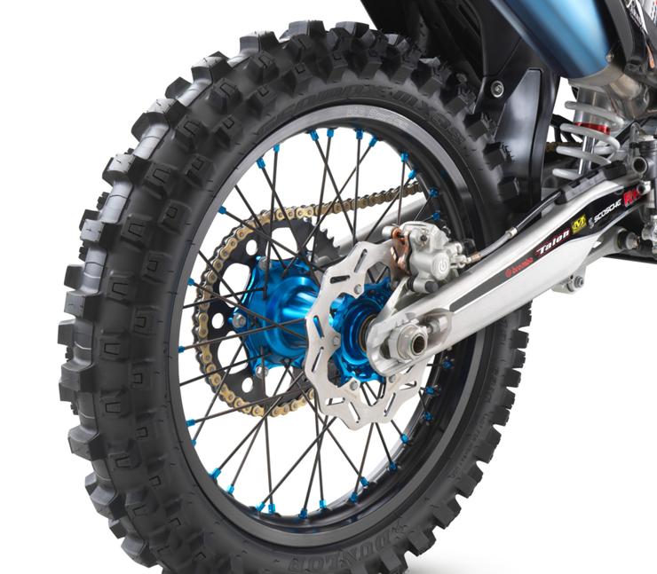 Перечень обновлений завершается парой новых анодированных ободов D.I.D DirtStar и анодированных фрезерованных ступиц. Помимо максимального снижения веса, эта комбинация высококачественных компонентов обеспечивает и максимальную прочность. С учётом запросов любого честолюбивого кроссмена, новый FC 450 Rockstar Edition оборудован защитой двигателя, усиленной карбоном, и штатным устройством Holeshot, позволяющим стартовать со сжатой вилкой и перенесённым вперёд весом.