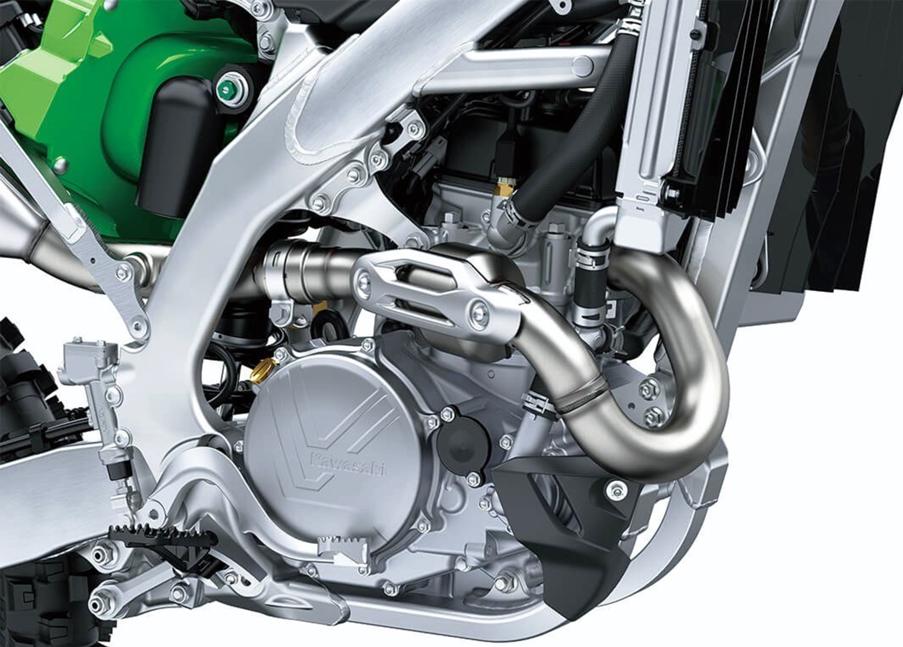 449-кубовый четырёхтактный одноцилиндровый двигатель жидкостного охлаждения с двумя верхними распредвалами основан на наработках, полученных при участии заводской команды Monster Energy Kawasaki. Он оснащается электростартером, запускаемым нажатием кнопки на руле и питающимся от компактной литий-ионной батареи.