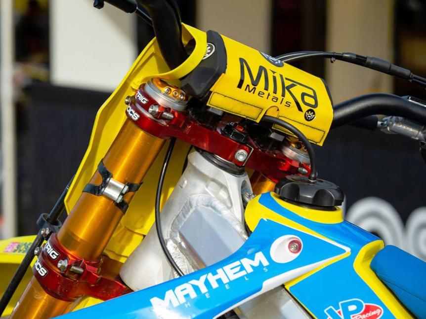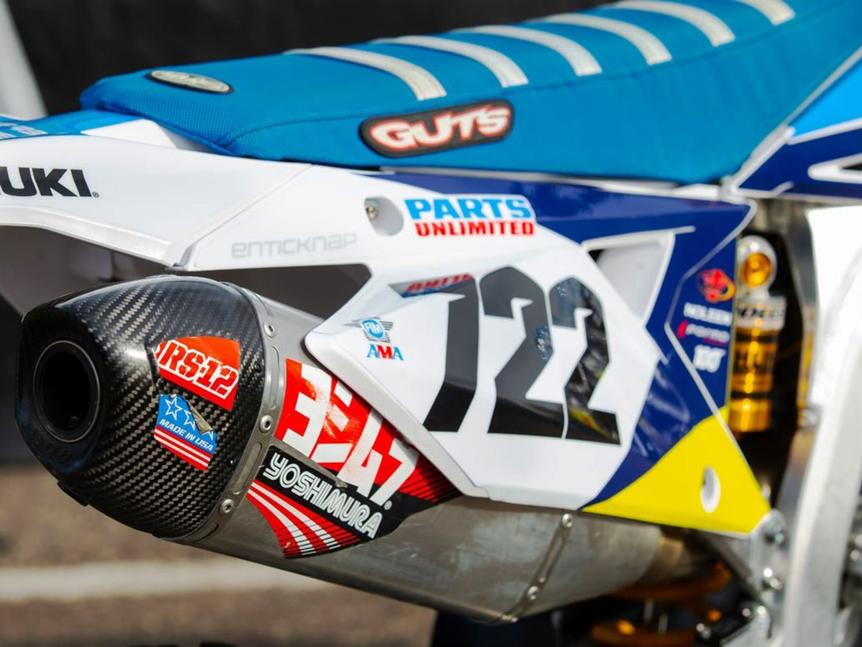 Вилка Öhlins установлена в траверсы Xtrig ROCS. На рычаге амортизатора установлена тяга JGRMX с регулируемой длиной. Что касается установки двигателя, команда применяет крепления Works Chassis Lab, имеющие возможность настройки жёсткости под каждого райдера. Вообще, Suzuki RM-Z450 - один из самых жёстких кроссовых мотоциклов на рынке, и это Энтикнапу нравится.