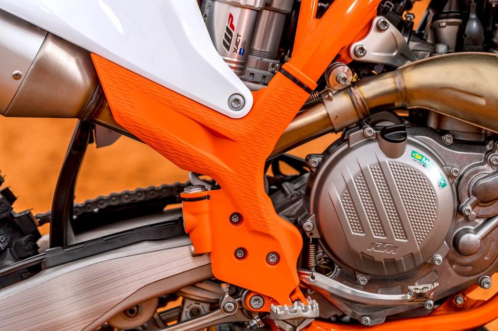 KTM годами обкатывают свои шасси, добиваясь всё более лёгкой и сбалансированной конструкции. В последние пять лет 450 SX-F оставался самым лёгким 450-кубовым кроссовым мотоциклом на рынке - в нынешней версии он весит 106,6кг в снаряжённом виде.