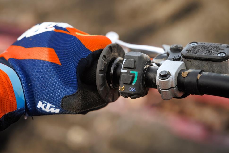 Радует возможность включить на ходу трекшн-контроль, особенно ближе к концу дня, когда уже устал. После полудня включение трекшн-контроля меняет этот мотоцикл, притом в хорошем смысле. Даже подвески как будто бы становятся другими - они цепче держатся за грунт, особенно в плоских поворотах, сухих и рыхлых. Разумеется, трекшн-контроль помогает 450 SX-F держать зацеп, ограничивая проворот колеса.