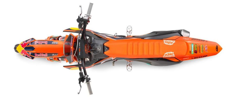 Смысл этих мелкосерийных версий в том, что они по технике максимально приближены к мотоциклам заводской команды (ну или позиционируются так). Разумеется, без заказных компонентов с индивидуально подобранными характеристиками, но всегда в более высоком техническом оснащении, с улучшенными серийными компонентами из каталога Power Parts. Правда, в этот раз общих компонентов с 450 SX-F 2022 года практически нет, потому что на следующий модельный год её ждёт масштабнейшее обновление, которое уже отражено в Factory Edition. Ну, за вычетом командной графики Red Bull, оранжевой обшивки сиденья и ещё некоторых украшений.