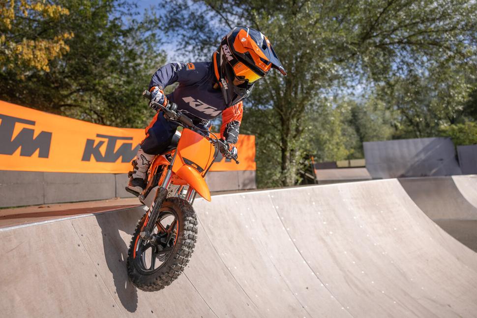 KTM SX-E 2 в очередной раз доказывает приверженность KTM идее воспитания новых чемпионов с самого юного возраста, начиная с абсолютно низового уровня и объединяя ощущение "большого" мотоцикла с удобством и простотой электротяги.