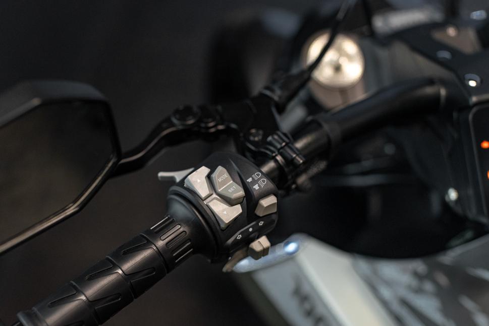 Дизайн и компоновка на удивление плотные и массивные как для спортбайка, так и для круизёра - в мотоцикле нет открытых пустых пространств или непонятных ниш. Если, конечно, не считать левитирующего хвоста с аккуратно встроенной диодной полоской фонаря и видимого отсутствия задней подвески - она здесь замаскирована, напоминая этим дрэг-байк с длинным маятником. Цельное двухместное сиденье выглядит скорее стремительным, чем удобным, но в чём ему не откажешь, так это в плавности линий и качественной подгонке - в бак оно переходит изумительно ровно. Небольшой упор на водительской части намекает на то, что мотоцикл достаточно динамичен, чтоб сдвинуть райдера на ускорении, а рельефный бак подразумевает достаточно активное свешивание. С колёсной базой в 1720мм и круизёрной рулевой геометрией этому мотоциклу явно не помешает помощь в поворотах при динамичной езде.