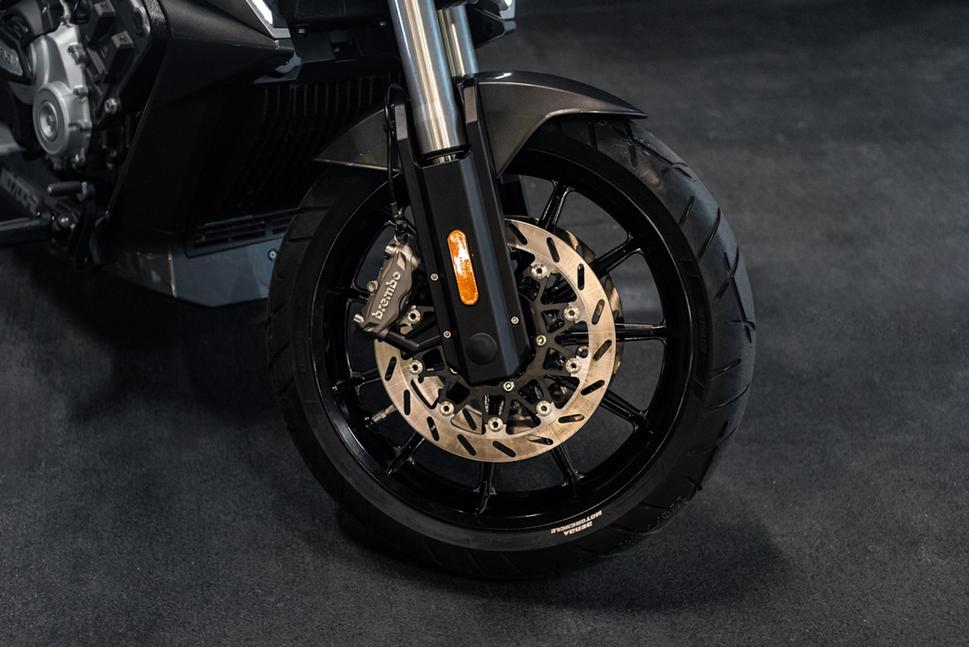Что касается динамики, то тут она есть. Судите сами: 676куб.см рабочего объёма, рядная четвёрка жидкостного охлаждения, 78,5лс на 10050об/мин и 60Нм на 8000об/мин. Характеристики, вполне пристойные по меркам современного дорожного спортбайка, в том числе и верховой характер мотора. В плане массы Benda LFC 700 2024, конечно, не совсем спортбайк: он весит 230кг в снаряжённом виде, включая 17-литровый бензобак. Кстати, про топливо: мотоцикл требует бензина с октановым числом не ниже 95, поскольку степень сжатия в двигателе составляет 11,6:1. Максимальная скорость заявлена равной 195км/ч, а средний расход равен 5,5 литра на сотню.