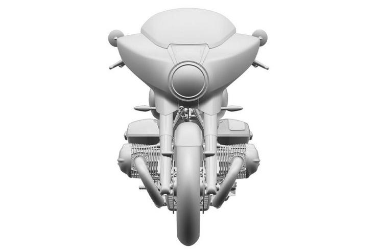 Большой фэйринг позволит установить намного более обширную приборную панель, чем на обычном R 18. Наряду с двумя большими круглыми шкалами на эскизе изображена огромная цифровая приборная панель, очевидно предназначенная для бортовой мультмедийно-информационной системы и спутниковой навигации.