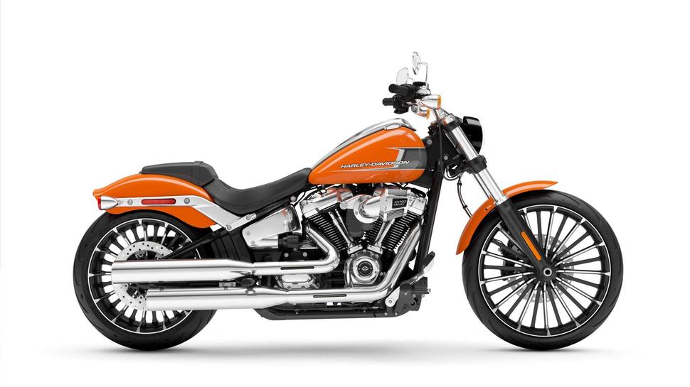 Следующая новость состоит в том, что Harley Davidson возвращают на североамериканский рынок Breakout, конечно же в обновлённом виде. Длинный и изящный Softail восходит к классическому чопперному стилю с хромированной отделкой воздухозаборника Heavy Breather, низкопрофильной консоли бака, стоек заднего крыла, теплозащитных экранов на выхлопе, боковых крышек, поворотников и зеркал. Новые 26-лучевые литые колёса имеют чёрную и фрезерованную отделку. Что касается характеристик, то Breakout вооружён знаменитым 117-дюймовым V-твином Milwaukee-Eight с тягой и производительностью, достойными дрэгстера. Большой 19-литровый бензобак даёт круизёру неплохой запас хода, а почти прямой руль делает посадку более удобной. Breakout 202 года наряду с семейством Fat Bob, Fat Boy, Heritage Classic, Sport Glide и Low Rider будет поставляться со штатным круиз-контролем, а кроме того, клиенты смогут дооборудовать мотоцикл трекшн-контролем для дополнительной безопасности.