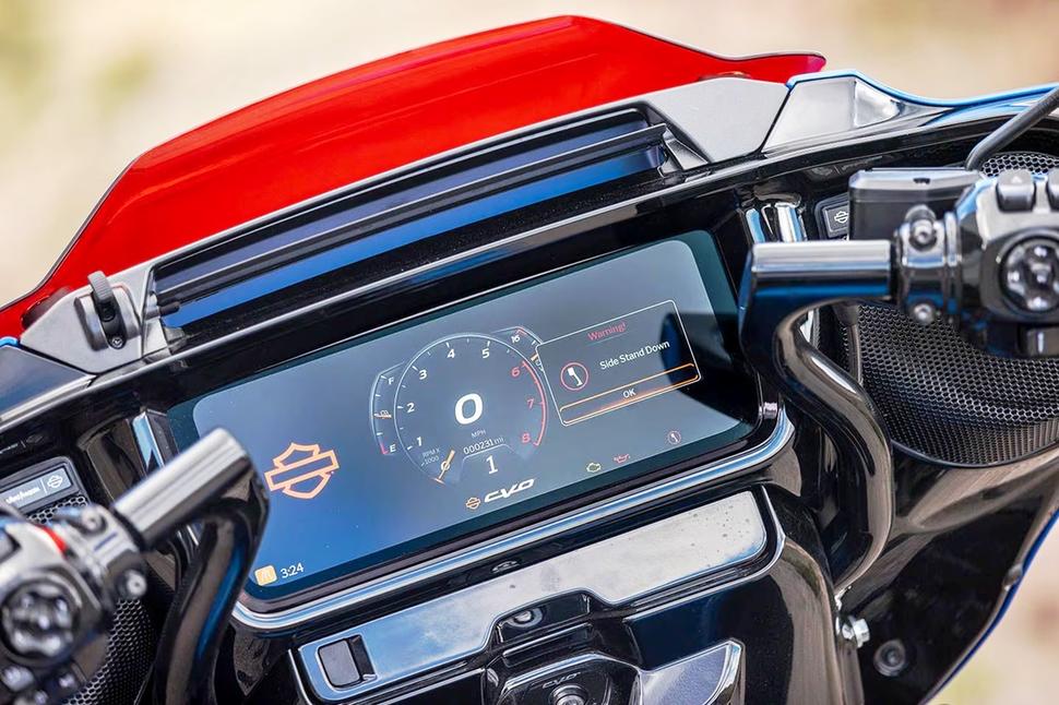 При всей его гоночной родословной, это всё же типичный CVO, а значит - роскошный туристический мотоцикл. Мультимедийный экран большой, чёткий и легко читается. Дизайн обтекателя аэродинамичный, но не перегруженный. Качество лакокрасочного покрытия исключительное - оно глубокое, насыщенное и безупречное. Все места контакта райдера с мотоциклом отлично подогнаны, ничего не болтается, не скрипит, не проминается, всё это ощущается солидным и дорогим. Аудиосистема Rockford Fosgate громкая и чистая - даже на скорости.