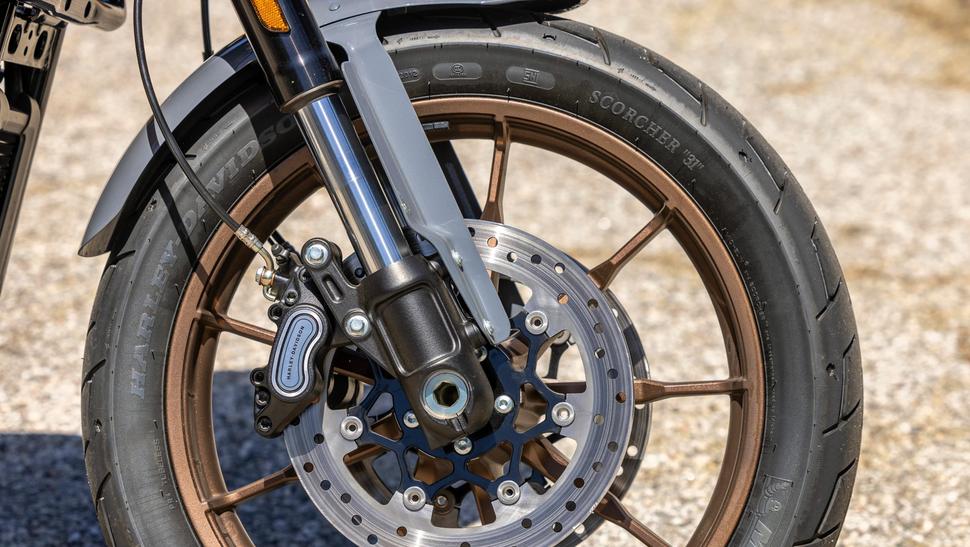 Ход амортизатора задней подвески Harley Davidson Low Rider ST был увеличен с 43 до 56мм, в результате ход колеса достиг 11,1см, и это шаг в верном направлении. Вместе с 13см хода вилки это обеспечивает намного более комфортную езду, чем на большинстве куцых задних подвесок HD.