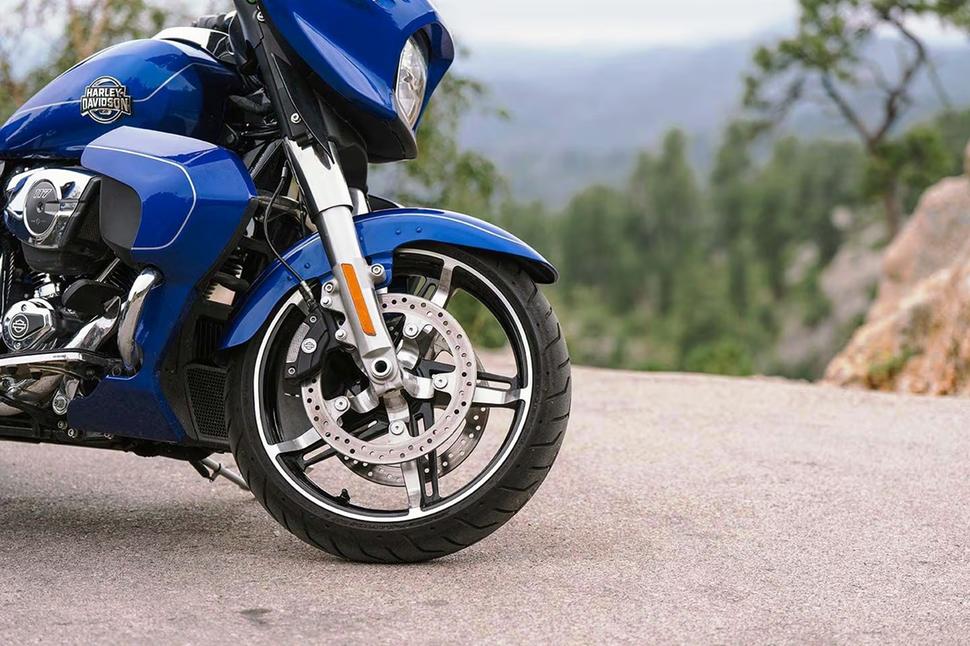 Обновлённый бэтвинг на Street Glide Ultra дополняют "валенки" - нижние элементы обтекателя, закрывающие ноги, высокий ветровик и увеличенные дефлекторы на вилке. 12,3-дюймовый сенсорный дисплей пришёл с прошлогодних Глайдов вместе с четырьмя режимами езды. Обновлённый фейринг вмещает два 5,25-дюймовых динамика, подключенных к 200-ваттному усилителю. Сзади Ultra оснащён двумя газомасляными амортизаторами Showa. Кстати, по данным производителя, Street Glide Ultra на 22кг легче Ultra Limited и на 1750 долларов дешевле - 30749 долларов.
