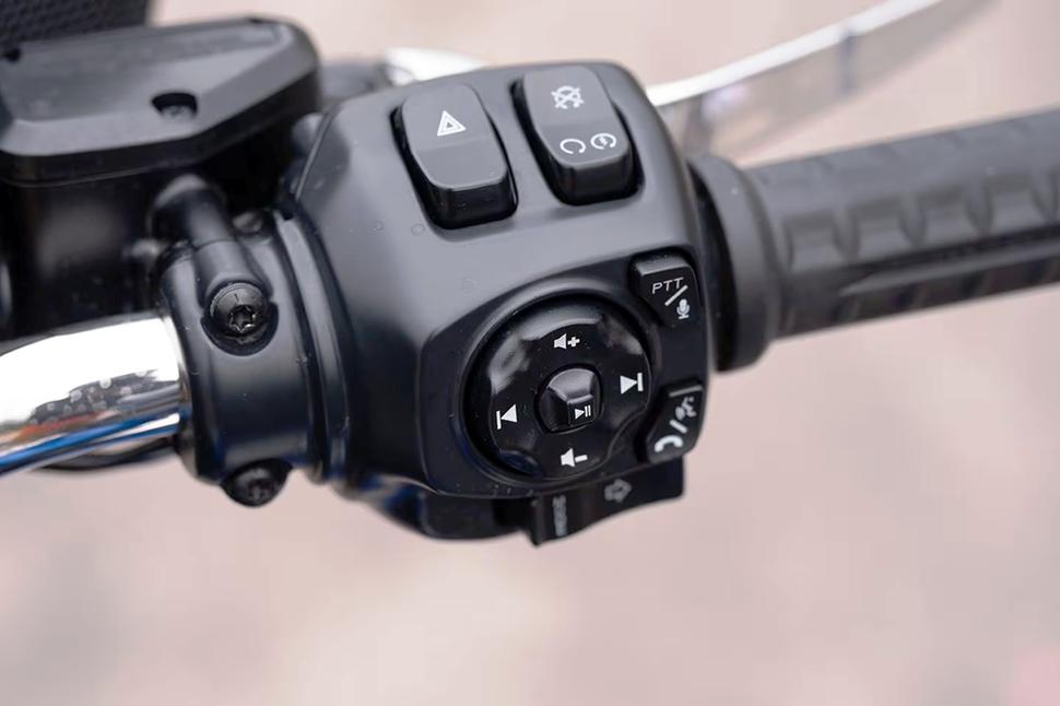 В долгой поездке не менее важно, чем удобное сиденье, иметь возможность легко пользоваться навигацией, держать связь с семьёй и слушать музыку, не отвлекаясь от езды. Большинство современных мотоциклов, увы, не могут предложить действительно хорошую интеграцию смартфона, но Harley тут сумели опередить многих. Street Glide Ultra 2025 оснащён большим 12,3-дюймовым TFT-дисплеем, причём он ещё и сенсорный. Более того, сенсор работает на ходу и отзывается на руку в перчатке, хотя на пультах есть всё для навигации по меню, не убирая рук с руля. Дисплей поддерживает беспроводной Apple CarPlay, а вот с Android Auto пока несовместим.