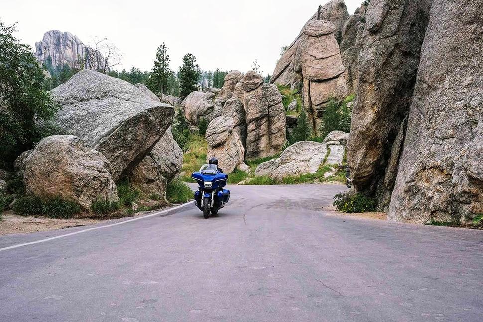 За два дня езды по шоссе Street Glide Ultra очень полюбился тем, как легко он преодолевает большие дистанции. Но прямые дороги - это не главное в жизни мотоциклиста, и вскоре на пути оказалась целая сеть извилистых дорог. Что может быть лучше, чем оказаться там на 390-килограммовом монстре с минимально настраиваемыми подвесками, простенькими нерадиальными суппортами и 162-сантиметровой колёсной базой?