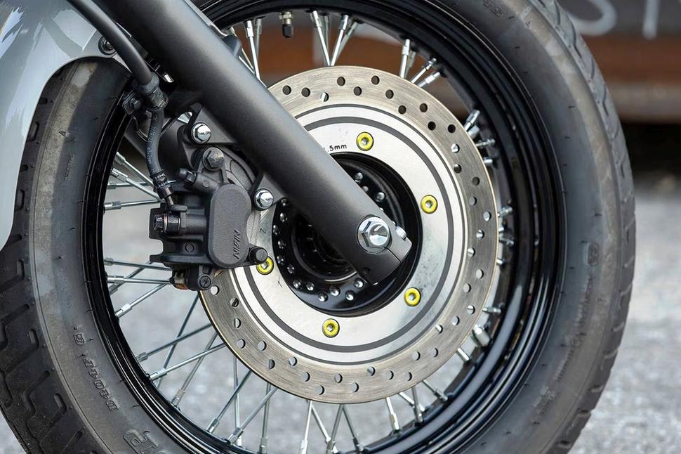 Двухпоршневой передний суппорт на 296-м диске тормозит относительно прилично, а вот задний тормоз на 276-м диске прям-таки существенно улучшил ситуацию. В мотошколе инструктор вам скажет, что у мотоцикла главный тормоз - передний, но если он грамотный, то добавит, что у американских круизёров не менее важен задний из-за веса и длинной базы. Вот тут так и есть: переход с барабана на дисковый улучшил и тормозное усилие, и модуляцию.