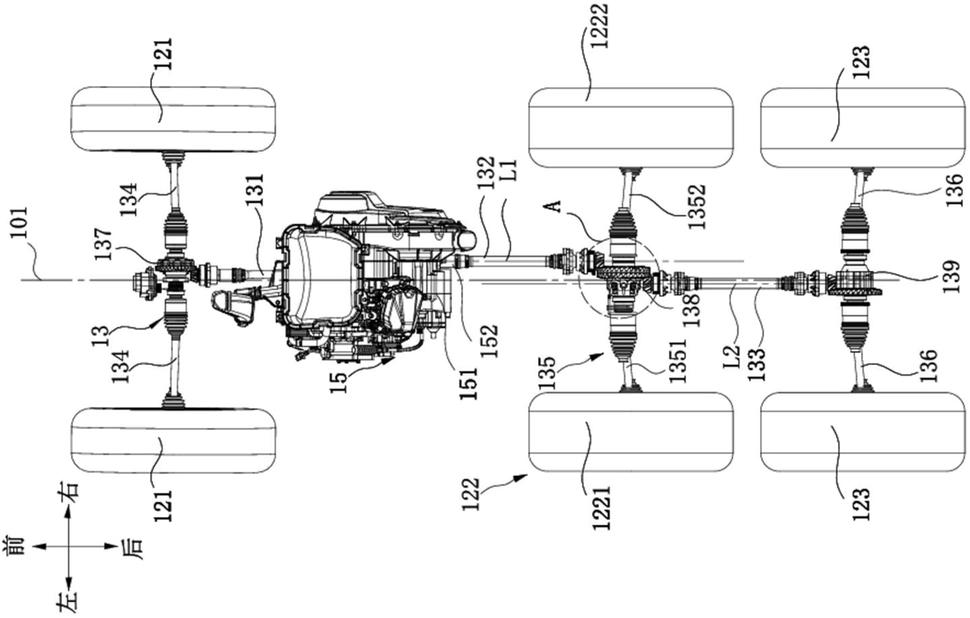 Патент CFMoto вращается вокруг деталей системы привода 6x6, в частности, того, как привод передаётся со средней оси на заднюю. Необычно, что в нём используется слегка смещённый вход от двигателя к среднему дифференциалу, который сам содержит двухстороннюю коронную шестерёнку. Если смотреть сверху, то шестерня на входе приводит правую сторону коронной шестерни, а слева от неё находится шестерня, которая передаёт привод на третью ось. При этом задний дифференциал на третьей оси абсолютно обычный.