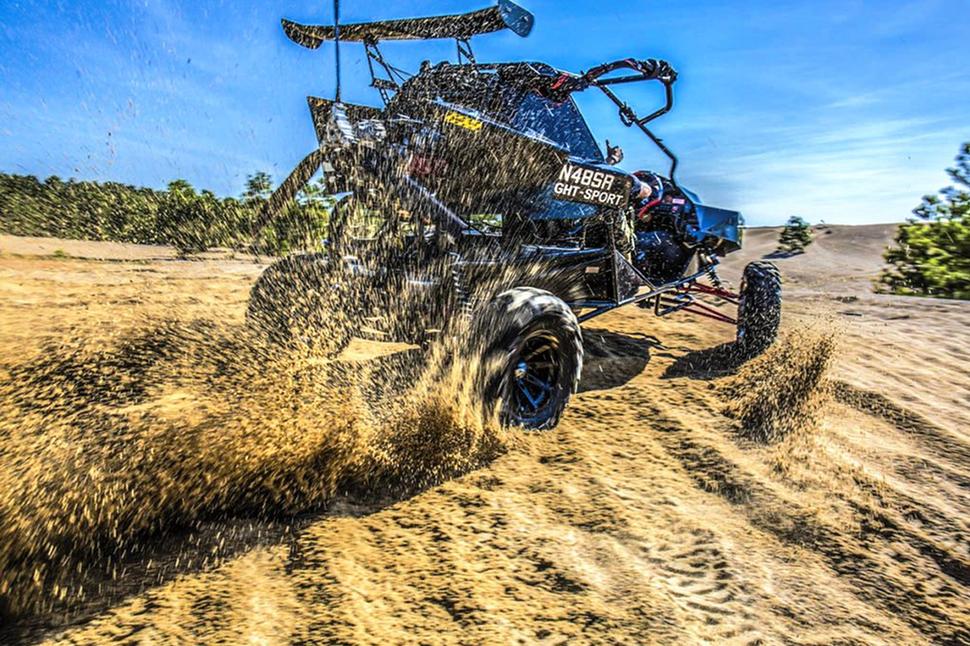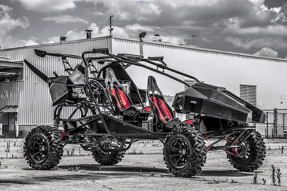 Машинка с шириной колеи 65 дюймов (165 см) имеет задний привод, два кресла, расположенных одно за другим, подвески на двойных А-образных рычагах и амортизаторах Fox с внешним резервуаром. Шасси из хром-молибденовой стали и карбоновый обвес позволяют сделать аппарат лёгким - примерно на 150 кг легче аналогичного двухместного вездехода. В походном положении крыло, очень похожее на параплан, сложено за задним сиденьем. Без крыла аппарат в целом изрядно напоминает обычную багги, за вычетом того, что кресла находятся не бок-о-бок, а расположены в ряд. Правда, есть нюанс: пропеллер, вне всякого сомнения, может быть уязвим к ударам на сложных маршрутах.