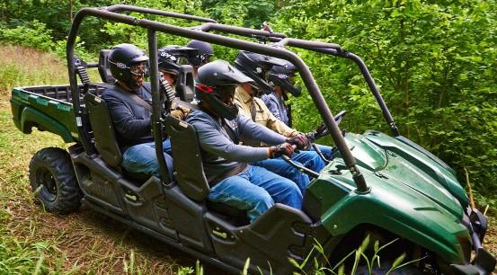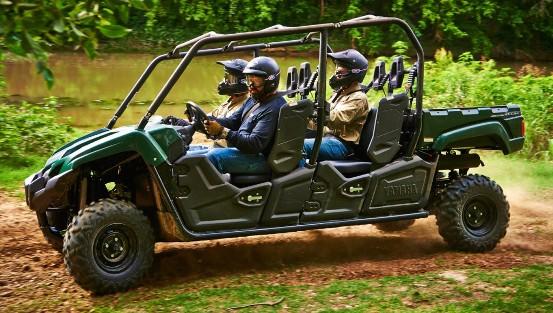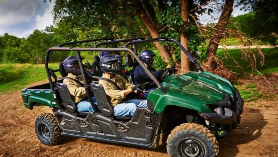 Все мотовездеходы с двойной кабиной имеют больше шансов застрять, чем их короткие собратья. Происходит это за счет увеличенного расстояния между колесами. Нам пришлось один раз вытаскивать квадроцикл из грязи. Просто заблокируйте дифференциал в режиме полного привода, если не уверены, что справитесь. Для пассажиров все места одинаково удобны. Не будет никаких споров о том, кому сидеть в середине, ведь места достаточно, и у всех есть подлокотники. За счет сдвинутого среднего сиденья, плечи пассажиров не выстроены в одну линию, так что места хватает всем. Сзади также достаточно места для ног, даже самый высокий участник нашей группы не жаловался. Обзор с заднего ряда прекрасный, благодаря более высокому расположение сидений и окошкам в передних подголовниках.