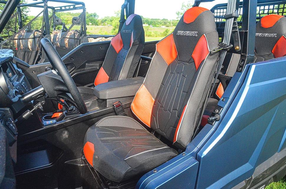Кроме того, эти модели получили низкопрофильный спортивный передний бампер, полимерную спортивную крышу, четыре премиальные двери и эргономичные сиденья. Что любопытно, в мире вездеходов пока нет единой классификации дверей - то, что одни компании называют полудверьми (half-doors), у других считается full-doors. Так и в этом случае: General оснащены полноценными вездеходными дверьми, но называют их half-doors, хотя они многослойные (с внутренним пластиком и оснащены качественным уплотнителем. Передние даже имеют ручку снаружи - там, где её привыкли видеть автомобилисты.