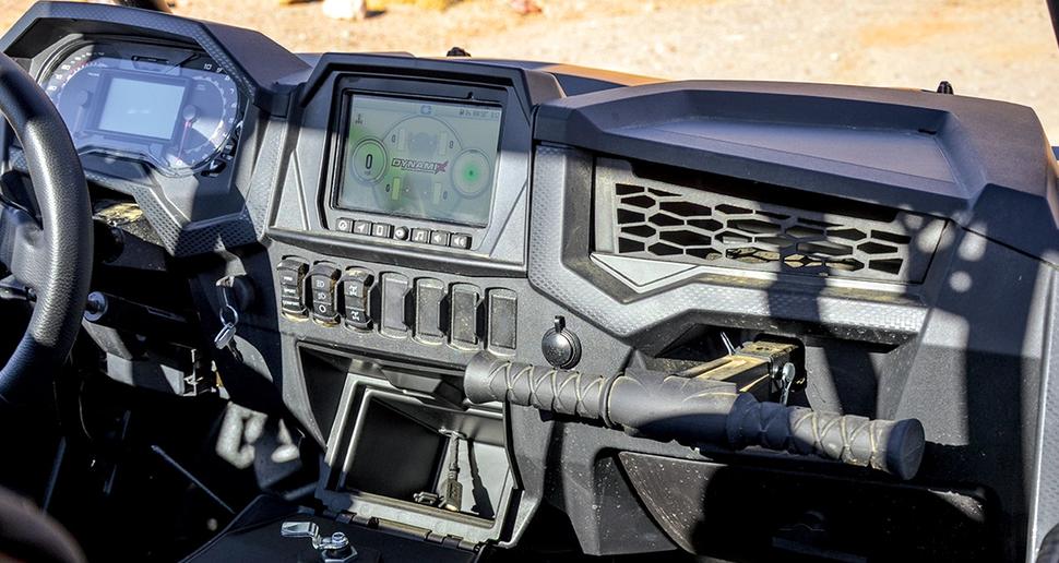Посадка и набивка сидений у Polaris RZR Turbo S приятнее - разве что в локтях чуть тесновато, потому что в стоковых дверях стоят динамики. Но в плане удобства кабины выигрывает Pro XP - там больше бардачков, отсеков и ниш для всяких мелочей типа перчаток, перекусов, телефонов и так далее. Руль регулируется и выдвигается, а покрытие его меньше скользит, как и на пассажирском поручне.