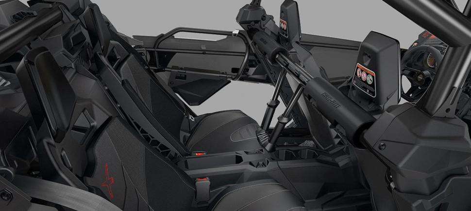 Новый четырехместный квадроцикл Polaris RZR XP 4 Turbo S приводится в движение двухцилиндровым двигателем ProStar Turbo High-Output DOHC объемом 925 куб. см. Через ременную трансмиссию Polaris PVT проходит 168 "лошадок". Также мотор снабжает энергией новую систему полного привода Extreme Performance On-Demand All-Wheel Drive. Она позволяет водителю в полной мере насладиться возможностями полного привода наряду с огромной мощностью, выдаваемой мотором. Can-Am развивает желаемую скорость с помощью трехцилиндрового двигателя Rotax ACE объемом 900 куб. см. с турбонагнетателем, жидкостным охлаждением, встроенным интеркулером и воздушной системой Donaldson. Топливо подается в мотор через высокопроизводительную систему впрыска и дроссельную заслонку с электроприводом. Водитель может выбирать из нескольких карт в зависимости от собственного стиля езды и условий. Что-то подобное есть и у квадроцикла Turbo S от Polaris. Мотор передает энергию посредством чрезвычайно отзывчивой бесступенчатой трансмиссии (CVT). Что касается дифференциала, то квадроцикл Can-Am оборудован самоблокирующимся передним дифференциалом с технологией Smart-Lok. Smart-Lok—это серьезная система, предлагающая четыре режима: 2WD, 4WD с заблокированным передним дифференциалом, 4WD TRAIL ACTIV и 4WD TRAIL.