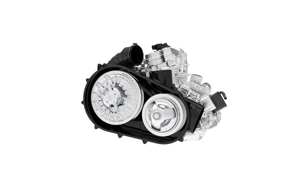 - Инжекторный четырёхтактный 1000-кубовый двухцилиндровый мотор с двумя верхними распредвалами