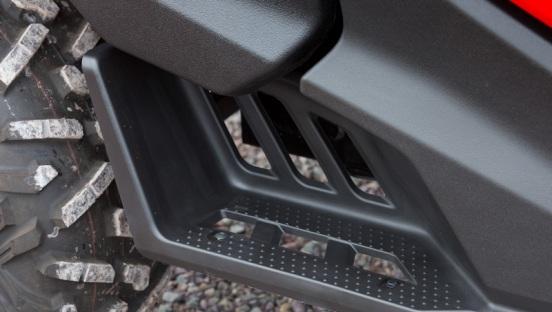 С первого взгляда задняя часть квадроцикла кажется просто большой грузовой платформой, которая пригодится вам для выполнения различных работ. Но стоит потянуть дверь здесь, щелкнуть там, и вы получаете ½ заднего сиденья с небольшим отделением для хранения позади пассажира. Проделайте то же самое с другой стороны, и вы сможете перевезти пять пассажиров, ведь спереди на комфортабельной скамейке умещаются трое человек. Литые диски обутые в шины Maxxis Bighorn придают машине стильный вид.