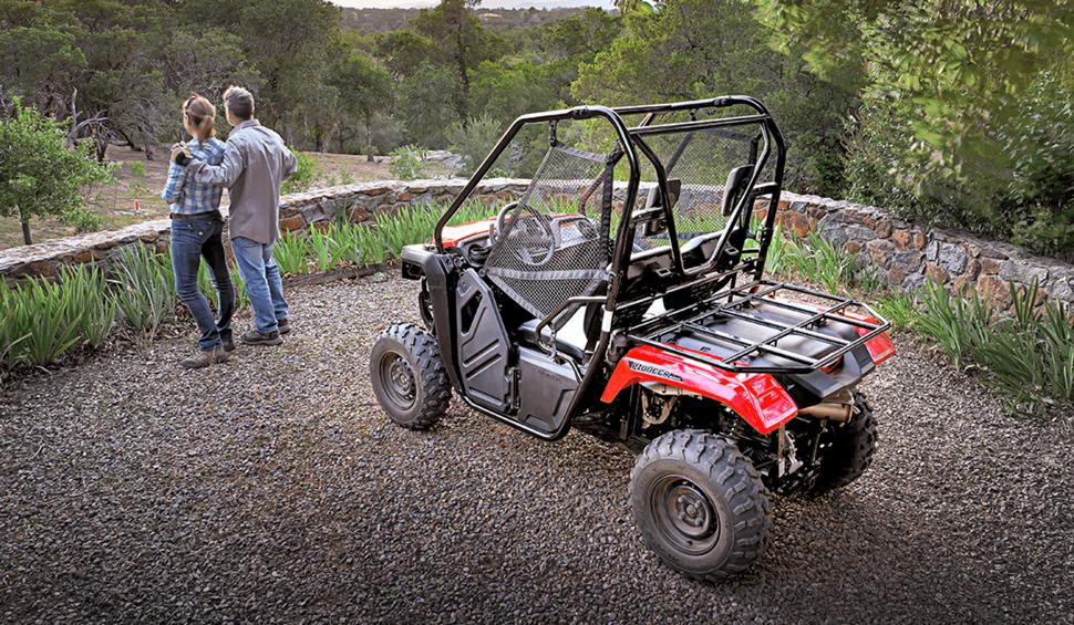 Квадроцикл Honda Pioneer 500 разительно отличается от обычных утилитарников. Здесь нет привычной грузовой платформы. Вместо нее оборудован задней багажной полкой, как на квадроциклах. Ее грузоподъемность составляет 136 кг. Pioneer 500 также оснащен двухдюймовым сцепным устройством и может буксировать 453 кг. Если к этому моменту вы начали думать, что у Pioneer 500 много общего с ATV, то вы правы.