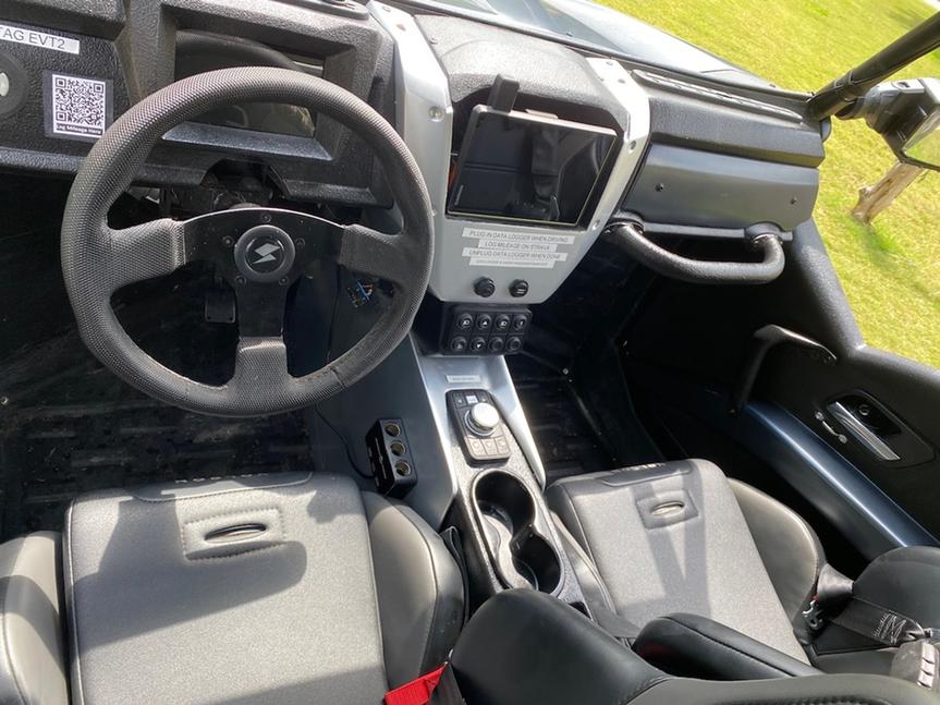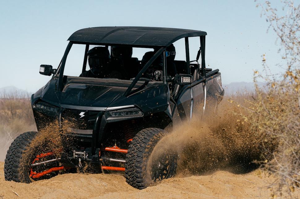 Несмотря на крайнюю нехватку времени, оценить скоростные качества Stag удалось: он очень быстр. В этом плане он похож на хорошо работающий турбированный четырёхместный RZR или X3. К сожалению, на представленных на тест прототипах Volcon Stag не было передних дифференциалов, так что на сухом грунте ему было немного не по себе с задним приводом. Реально удалось набрать лишь 93км/ч при заявленной максималке в 130. Однако, когда в какой-то момент он поймал зацеп - людей вжало в кресла. Stag быстр, но пока его не удастся сравнить с другими моделями, невозможно судить, быстрее ли он, чем они.