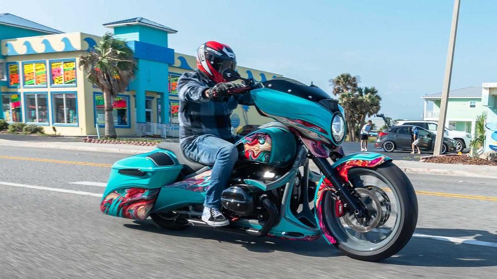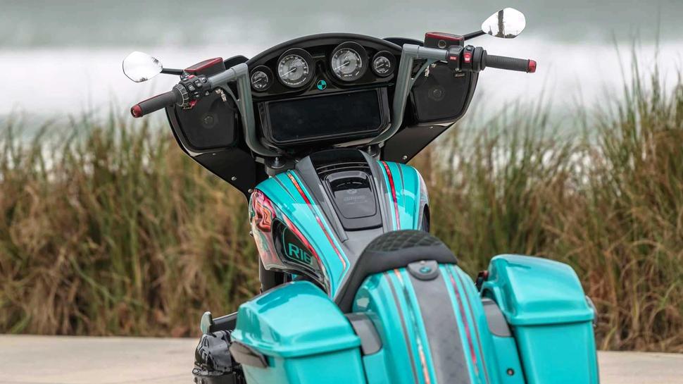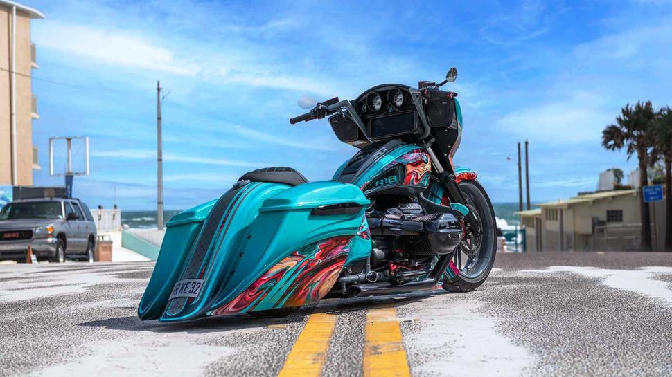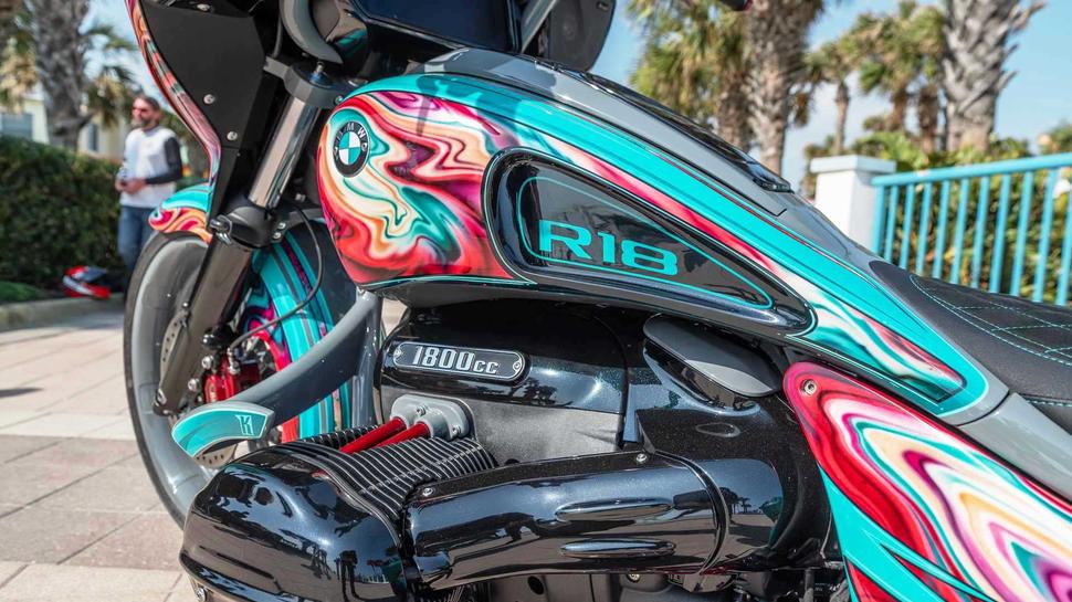 Работая над недавним проектом, Фред обратился к помощи сына по имени Лен. Этот кастомный BMW R 18 носит гордое имя Heavy Duty, то есть, "предназначенный для тяжёлых условий". Заказанный непосредственно BMW для Daytona Bike Week 2023 баварский бэггер был украшен несколько клюквенной американской эстетикой.