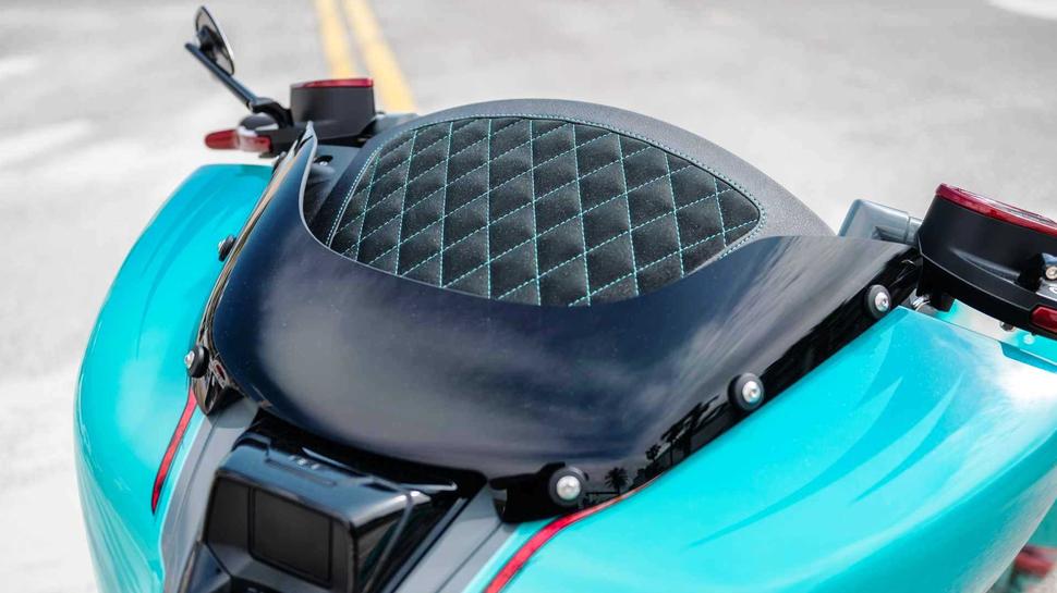 Для такого зрелища совершенно не подошла бы ни одна сплошная расцветка, так что команда наняла художника-татуировщика Марселя Синнвелла для создания сногсшибательной ливреи. И он это сделал! Несколько оттенков бирюзы и молочно-красные яшмовые завитки потребовали от Синнвелла недюжинных умений работы с аэрографом, пинстрайпами и навыков колориста.