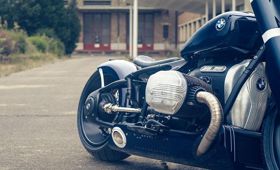 Пара уникальных компонентов этого BMW R 18 - это большой алюминиевый защитный поддон и изготовленный из сегментов выпускных патрубков и кусков глушителей от спорткаров выхлопной тракт. Жалюзи на поддоне - отсылка к Bentley.