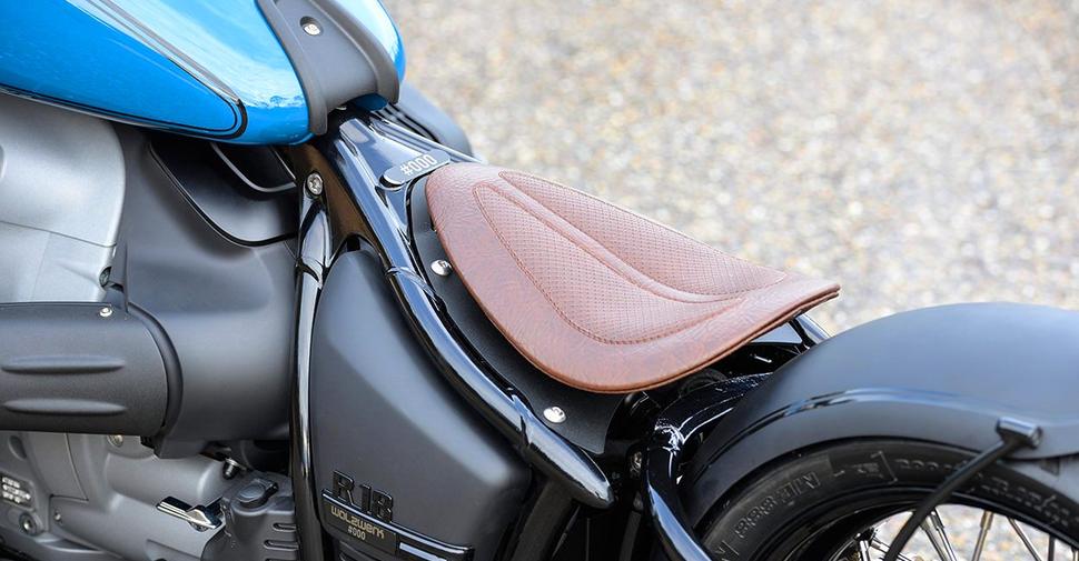 Пожалуй, самая симпатичная часть — это комплект “Боббер”, полностью преображающий заднюю часть мотоцикла. Начинается он с парящего соло-сиденья, установленного на заглушке, закрывающей внутренности BMW. Для заказа доступны сёдла двух размеров, а крепление регулируется в пределах 75мм, обеспечивая по-настоящему индивидуальный подход, несмотря на серийное производство компонентов.
