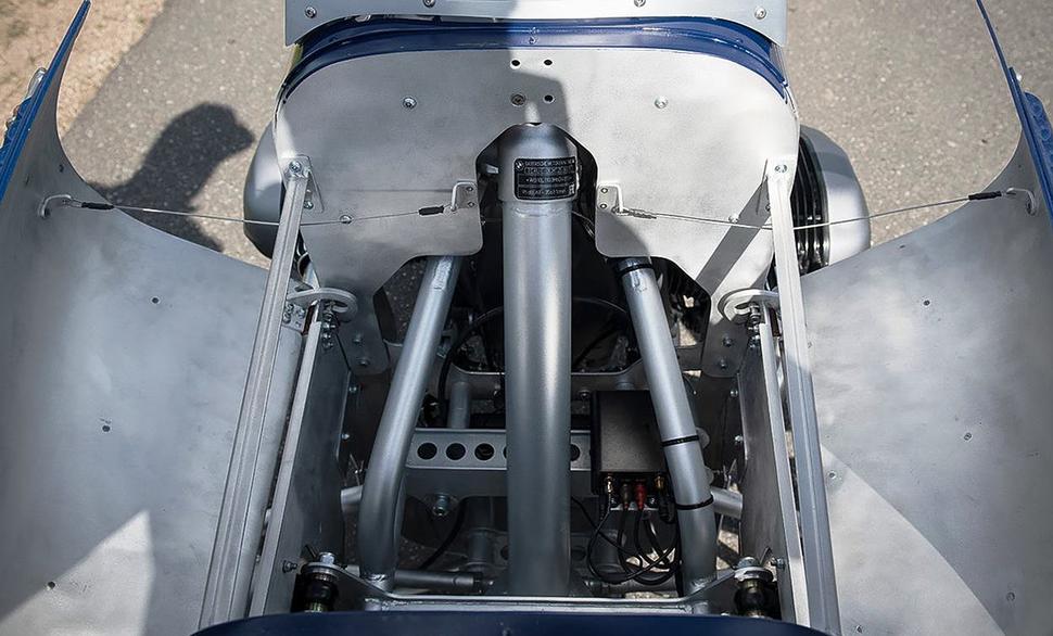 Завершает новую облицовку комплект закрытых колёсных крыльев, изготовленных вручную из алюминия. Кстати, заднее колесо здесь тоже кастомное.
