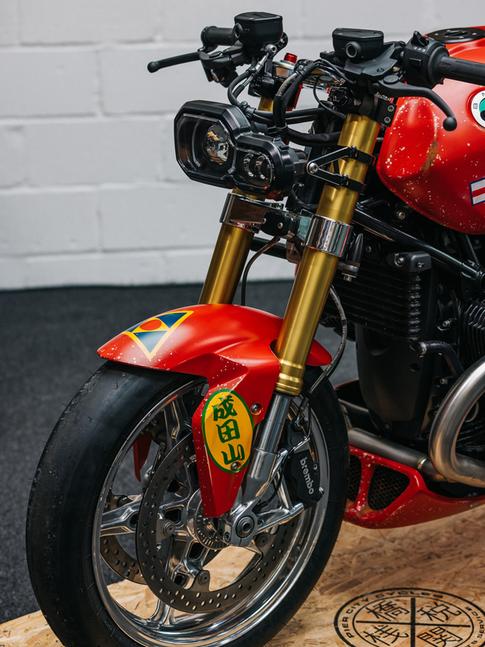 Мы работали с нашими друзьями из Valkyrie, которые предложили покрасить мотоцикл на уровне "кинореквизита", и мы на седьмом небе от счастья от результатов.