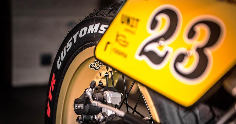 Флэт-трек зародился и стал популярным в США, и только потом пришёл в Европу, - объясняет Дани, -Поэтому мы решили отнестись с уважением к американскому стилю построения таких мотоциклов. А это кэнди-краска, жёлтые таблички и винтажный шрифт цифр на них.