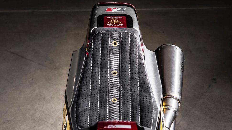 VTR изготовили комплект алюминиевых номерных табличек, встроив в переднюю табличку вертикальную пару фар Highsider. Перечень серийных частей включает также пару трекерных кожухов вилки, крышку бака Monza, руль Magura, а также органы управления и подножки Rizoma.