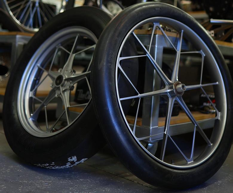 Переднее - 22-й диск, обутый в точно такую резину, как на Форде Model T сто лет назад, - хвастается Найджел. -Это Firestone 28x3, и я купил шину ещё до того, как сделал колесо. Шины сильно влияют на образ мотоцикла, и для меня это очень важно.